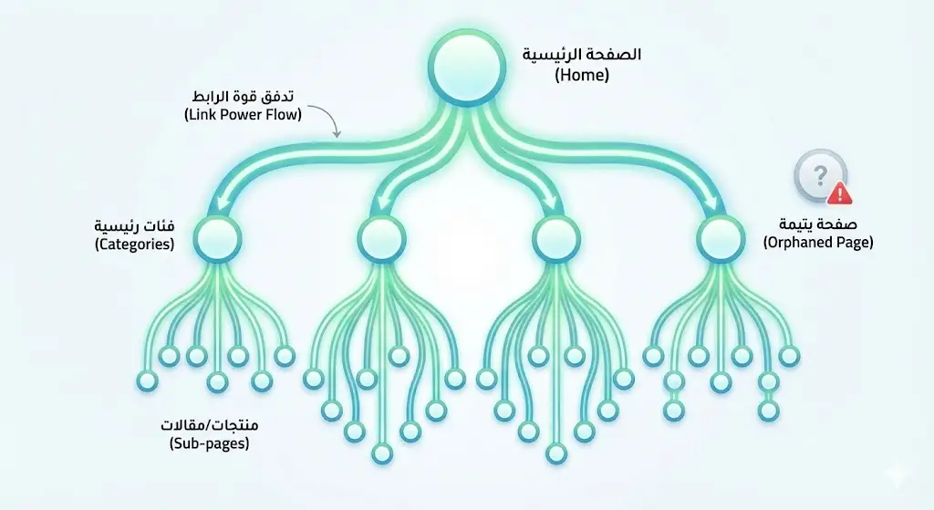 • لماذا هذا مهم لقرارك؟ إذا كان موقعك عشوائيًا، وقمت بإنشاء صفحة ممتازة لمنتج جديد، لكنك لم تربطها بباقي الموقع، ستصبح هذه الصفحة “صفحة يتيمة” (Orphan Page). بالنسبة لمحرك البحث، الصفحة اليتيمة تشبه غرفة بلا باب؛ لن يدخلها أحد، ولن تستفيد من قوة موقعك.